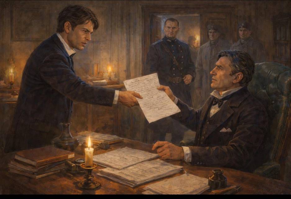 Я заметил, как несколько писарей переглянулись. Мерзликин же нервно провёл пальцами по краю стола, пытаясь заставить исчезнуть журнал и перо, которые ещё минуту назад были самым важным предметом в кабинете.