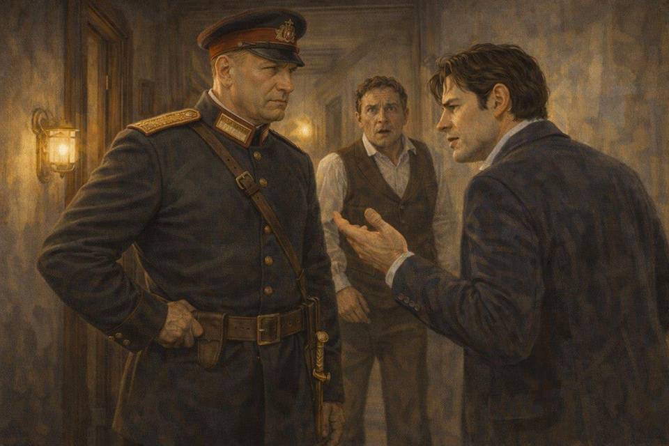 Пока господа лихорадочно подбирали должное оправдание своему присутствию, Алексей Михайлович неторопливо подошёл к двери. Поначалу ревизор сделал вид, будто искренне не понимает, отчего она распахнута настежь. Он остановился на пороге, осмотрел косяк, затем внимательнее посмотрел на створку. В этот самый миг, когда до него «дошло», что дверь сломана, его брови демонстративно поползли вверх. Ревизор тронул перекосившееся полотно, пальцами провёл по щепе, и мелкая заноза осталась у него на коже, словно немой, но вполне красноречивый ответ.