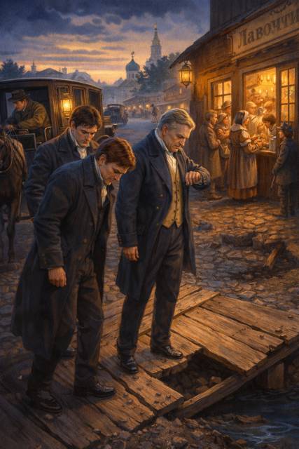 Он привычно поклонился и пошёл дальше, но слова его остались висеть в воздухе. Я заметил, как Михаил Аполлонович медленно перевёл взгляд с ямы на настил, затем на грязь на собственном рукаве. Раздражение на его лице постепенно уступило место сосредоточенности.
