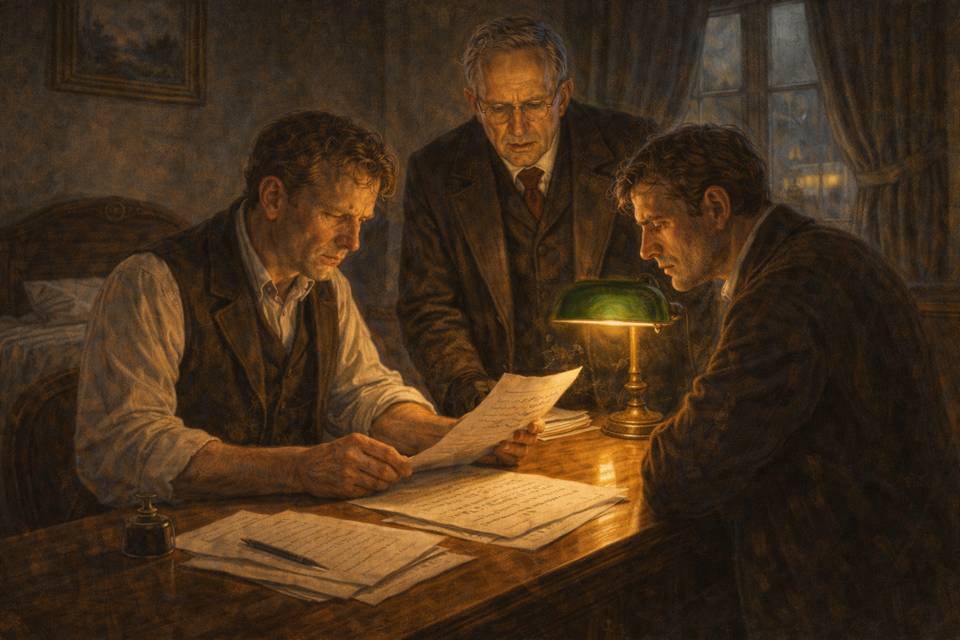 Мы с Алексеем Михайловичем всё ещё сидели за столом при приглушённом свете лампы, обсуждая события дня, и усталость начинала давать о себе знать, когда за дверью внезапно раздались быстрые шаги.