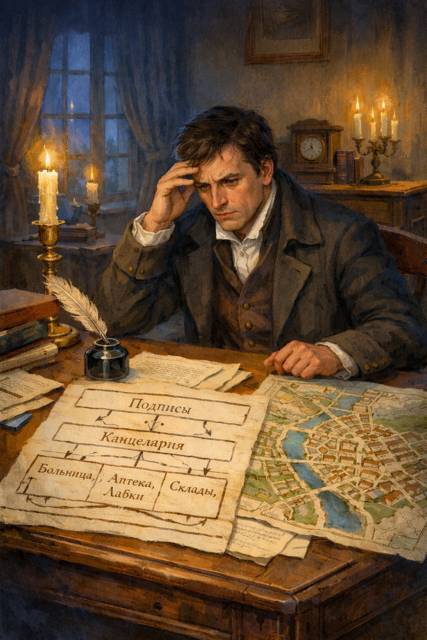 Дальше в дело вступала канцелярия, и именно здесь, в этих кабинетах с тяжёлыми столами, чернильницами и бесконечными ведомостями, цифры переписывались, сводились и превращались в отчёты. Затем те поднимались выше, пока не оказывались на столе у Голощапова, чья подпись ставила окончательную точку.