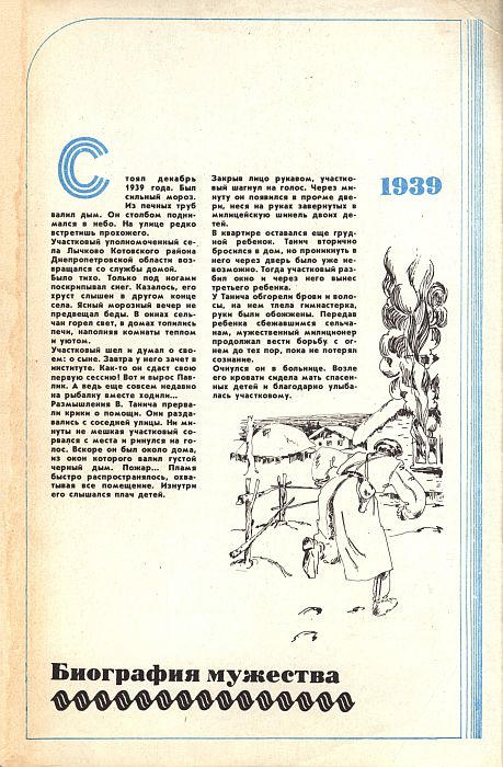 Размышления В. Танича прервали крики о помощи. Они раздавались с соседней улицы. Ни минуты не мешкая участковый сорвался с места и ринулся на голос. Вскоре он был около дома, из окон которого валил густой черный дым. Пожар... Пламя быстро распространялось, охватывая все помещение. Изнутри его слышался плач детей.