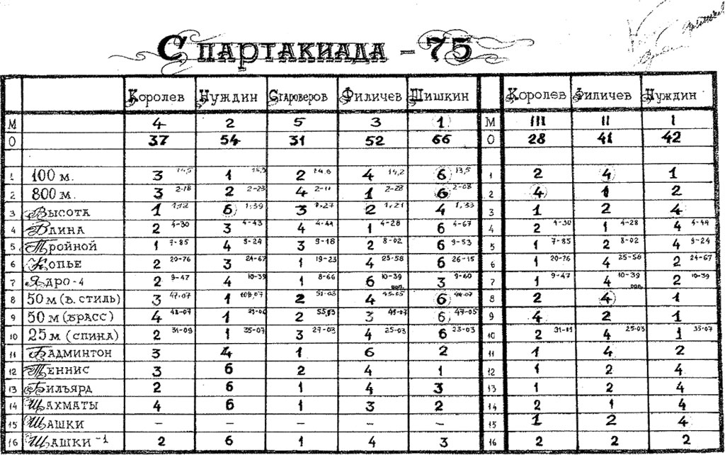 По возрастающей: В. Нуждин, В. Филичев, В. Ларионов, А. Королёв