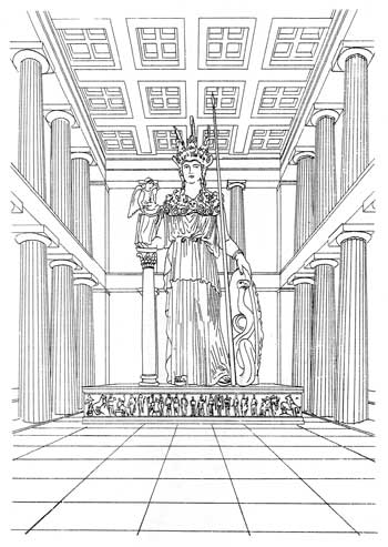 А дело было так. Хромоногий и безобразный бог Гефест воспылал страстью к Афине, когда та пришла к нему, чтобы выковать оружие, и попытался силой овладеть прекрасной, но непреклонной богиней. Та увернулась, а распалившийся бог-кузнец пролил семя прямо на бедра предмету своего вожделения. Афина с брезгливостью вытерла сперму клочком шерсти и бросила его на землю. Вот из этого субстрата при содействии Земли – Геи и родился змей, прозванный Эрихтонием{21}. Позднейшая традиция превратила его в змееногое чудовище, при виде которого люди сходили с ума. Афина самолично и тайно воспитала его. И хотя подробности данного странного эпизода олимпийской мифологии давно утрачены, знаменитый позднеантичный автор Павсаний, посетивший Парфенон во II веке новой эры и видевший своими глазами творение Фидия, изваянное из слоновой кости и золота, – прямо называет змея у ног Афины Эрихтонием (I, 24, 7).{22}