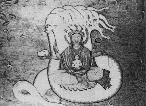 Согласно древнейшему доиндоевропейскому мировоззрению, космически запрограммированная женская сексуальная потенция шакти содержится в каждом атоме Вселенной, в каждой точке пространства и времени, в каждой человеческой клетке. Даже в мужской, ибо по тантрическому учению внутри каждого мужчины «сидит» женщина – в виде внутренней женской энергии. Она располагается вдоль позвоночного столба, поднимаясь от половых органов к голове – и выше, обеспечивая при этом не только мужскую сексуальность, но также мужскую силу и жизнеспособность в целом. Такая женская потенция, содержащаяся внутри всего живого и питающаяся космической энергией Мироздания, в основе которого также заложено Женское начало, – получило название Кундалини, что означает «змеиная сила». Соответственно и символом Кундалини является свернутая спиралеобразно змея с головами на обоих концах. Вообще змея в древних мифологиях и сакральных учениях почти всегда олицетворяет потенции и токи земли, неба и бесконечного Космоса. Даже грозовые молнии и полярные сияния интерпретировались как «змеиные знамения».