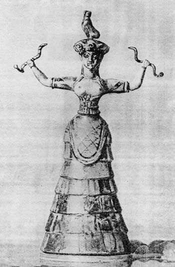 В древних культурах фаллический символ – змей как оплодотворяющая мужская сила, «муж всех женщин» почти всегда сопровождает женские божества. Это хорошо заметно на многочисленных древнеегипетских фресках и рисунках. Но, пожалуй, наибольшую популярность получили критские статуэтки Великой Богини и ее жриц со змеями в руках. Издревле женщинам и змеям приписывались одни и те же качества характера – таинственность, загадочность, интуитивность, а также коварство и непредсказуемость{47}. Главная функция женщины – быть продолжательницей рода и воспроизводить в своих детях жизнь – переносилась и на змей: ежегодное сбрасывание старой змеиной кожи воспринималось как возрождение новой жизни в лице полинявшего пресмыкающегося.