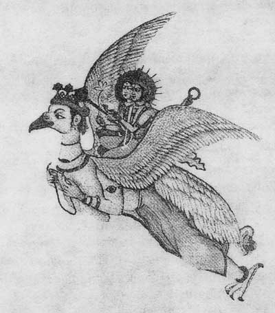 Древнеарийское мировоззрение сформировало и другие устойчивые мифологические образы змееподобных существ. Прежде всего, это наги – мудрые полубожественные существа ведийского и индуистского пантеона, полулюди и полузмеи; их змеиное туловище оканчивается человеческой головой. Они – хозяева Подземного царства Поталы, где живут в блистающих золотом и драгоценностями дворцах и владеют несметными сокровищами земли (в дальнейшем мифологема Потала трансформировалась в понятие рая). Им принадлежит тайна эликсира бессмертия, с его помощью они способны не только неограниченно продлевать жизнь и сохранять вечную молодость, но и оживлять мертвых (русские предания о «живой и мертвой воде» проистекают именно отсюда). Наги легко принимают человеческий облик и часто вступают в любовную связь со смертными людьми. Особенно изощрены в любовных утехах красавицы нагини. Но жизнь их вовсе не полна одного лишь благополучия: они находятся в непрерывной и далеко не победоносной войне с воинством птицечеловека Гаруды, который, как и наги, был порожден первопредком Кашьяпой. Похоже, что в обоих случаях мы имеем дело с обобщенной тотемной символикой. Кроме того, образ Гаруды смыкается со всей вереницей древних птицелюдей, прообраз коих, несомненно, восходит к Гиперборее и ее летающему народу.
