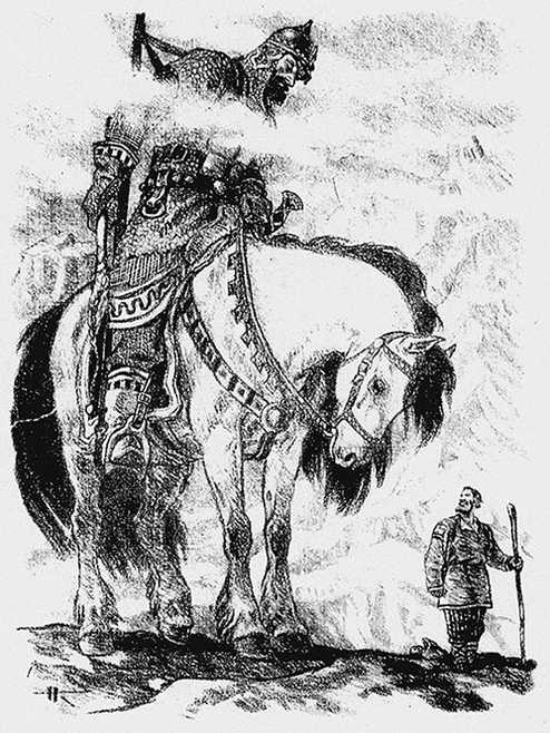Настоящее имя старейшины русского богатырского пантеона – Светогор (рис. 47): именно так поименован он во многих былинах и прозаических пересказах (по существу, сказах) по месту своего рождения и обитания Светлым горам, расположенным далеко на Севере (отчего они еще иногда называются Сиверными горами):
