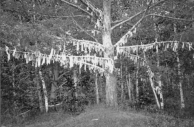 Рис. 30. Жертвенное древо возле православной часовни в деревне Окунево Омской области. Фото Валерия Демина