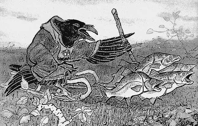 Рис. 31. Ворон Кутха. Иллюстрация Евгения Рачева к ительменьской сказке