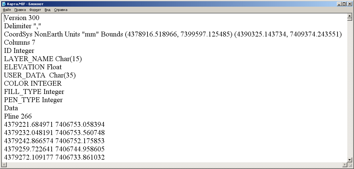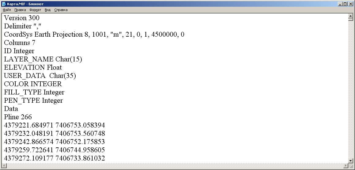 Исправленный заголовок MIF-файла показан на рис. 11.