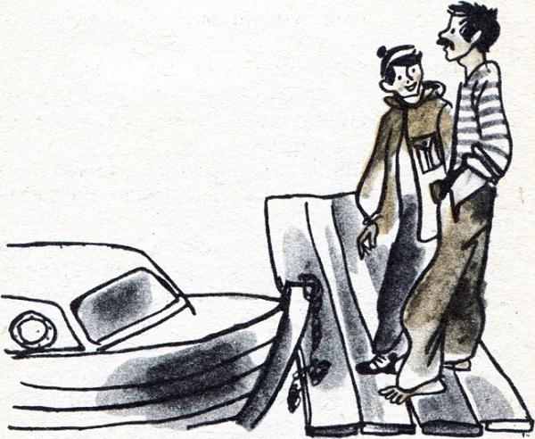 Потом мы увидели, что, облокотись на железный борт буксира, за нами с интересом наблюдает человек в замасленной ковбойке, берете и с золотым зубом.