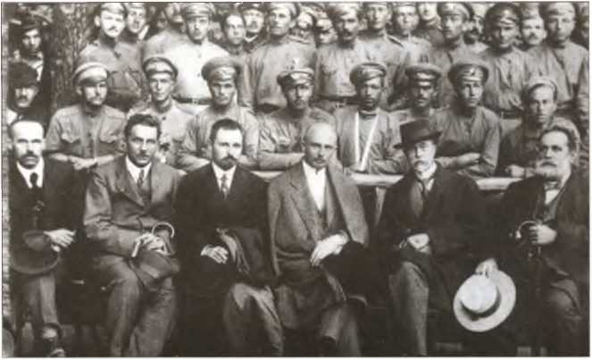 Военный министр А.Ф. Керенский со своими помощниками. В центре – Б.В. Савинков