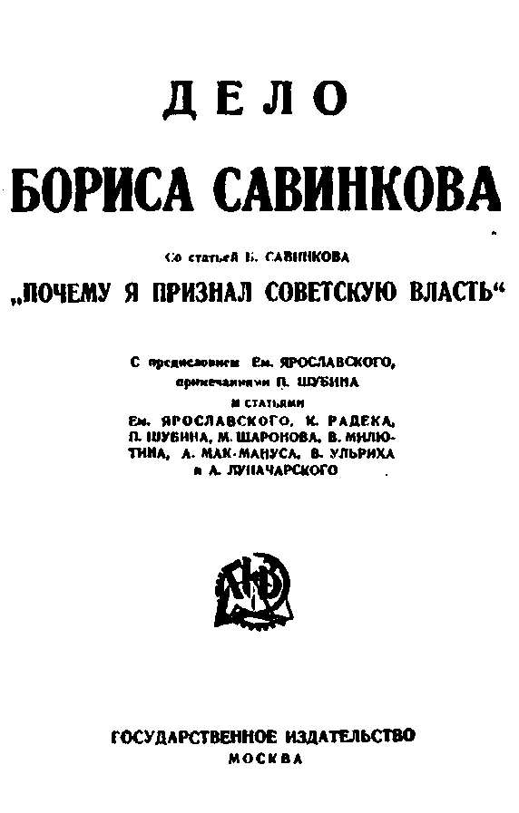 Дело Бориса Савинкова», изданное в СССР