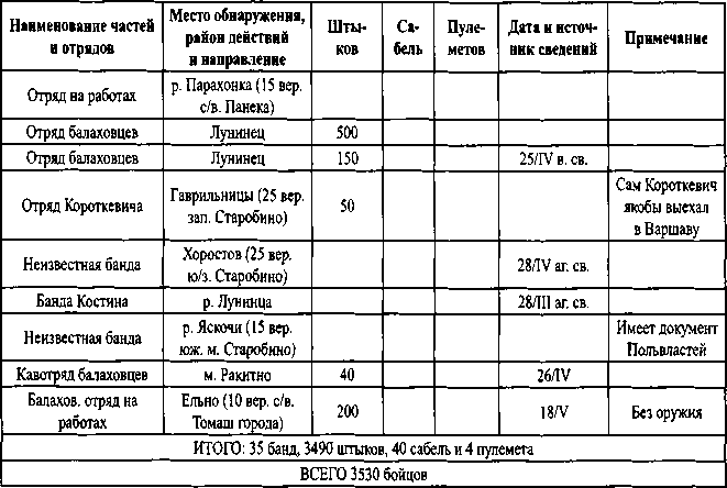 Органами ГПУ была установлена численность поредевших к этому времени вооруженных сил савинковских организаций на территории Польши и Литвы на 15 июня 1922 г.