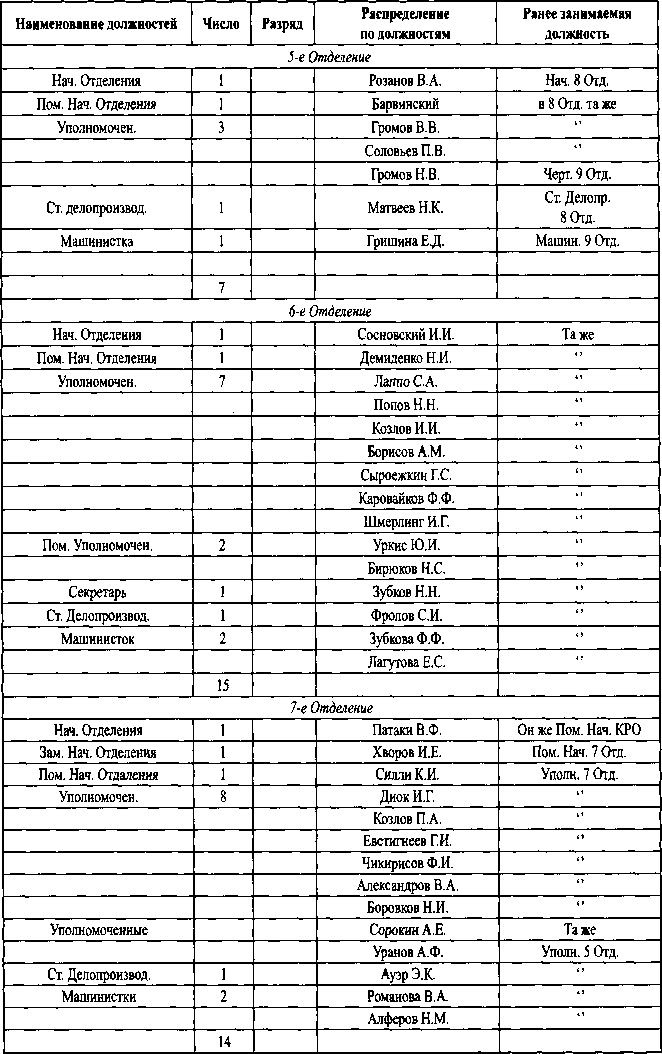 28 ноября 1922 г. заместителем председателя ГПУ И.С. Уншлихтом были утверждены штаты ГПУ Они свидетельствуют, что Контрразведывательный отдел ГПУ являлся по нынешним меркам совсем малочисленным подразделением. В нем значилось всего 135 человек, включая делопроизводителей и машинисток. «Мал золотник, да дорог» – говорится в русской пословице. Вот это определение, как нельзя кстати, относится к КРО первых лет его деятельности.