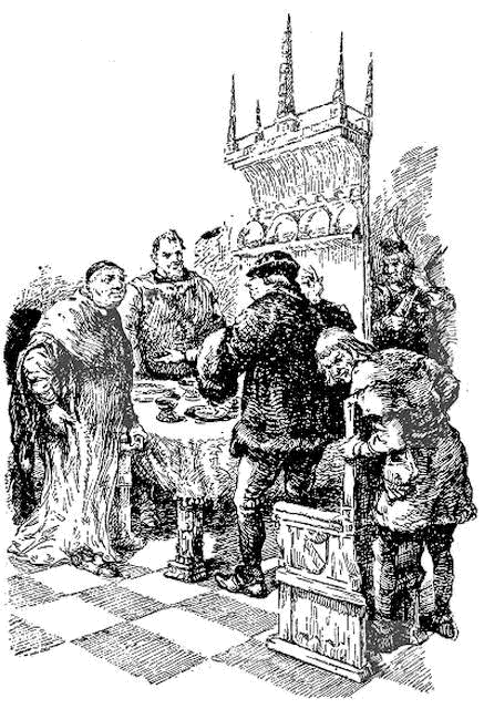 Граф де Кревкер підтримував веселий настрій короля, а улесливий церковник сміявся з кожного його жарту, захоплено повторював кожну двозначність, не соромлячись висловів, які примушували червоніти молодого незіпсованого шотландця навіть у його схованці. За півтори години розмова за столом закінчилася, і король, дуже чемно попрощавшись зі своїми гістьми, подав знак, що хоче залишитися сам.