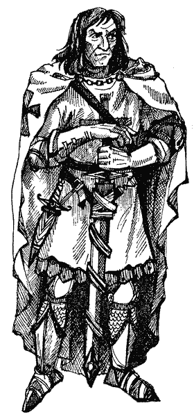Тамплієр теж переодягнувся – його костюм був також багатий, хоча й не так старанно та хитромудро прикрашений, але сам він справляв величніше враження, ніж його супутник. Він зняв кольчугу й замість неї надяг туніку з темно-червоного шовку, опушену хутром, а поверх неї – довгий білосніжний плащ, що спадав великими складками. Восьмиконечний хрест його ордена, вирізаний із чорного оксамиту, був нашитий на білій мантії. Він зняв свою високу дорогу шапку, – густі смоляні кучері, що личили до смаглявої шкіри, красиво облямовували його чоло. Постава й хода, сповнені величної грації, були б дуже привабливі, якби не гордовитий вираз обличчя, що свідчив про звичку до необмеженої влади.