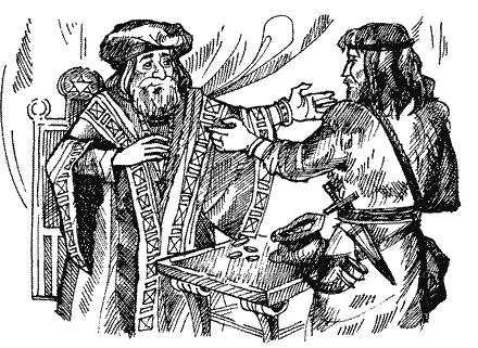 – Це я виконаю, – відповів Гурт, запхавши мішок під плащ. Але, виходячи з намету, він пробурчав собі під ніс: – Не бути мені Гуртом, коли не змушу Ісака погодитися на половину тієї суми, що він запросить!