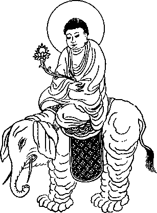 Вдовствующая императрица Лу-чжао в четвертом году правления под девизом Великая мудрость (461) соорудила белого слона с восседающим на нем в драгоценном паланкине бодхисаттвой Вишвабхадрой. Изваяние установили в зале для самосозерцания монастыря Средоточие радости и устроили по этому случаю чтение проповедей. В восьмой день десятого месяца того же года завершился пост, и присутствующие готовились покинуть свои места. Монахов собралось две сотни человек. Монастырь тогда еще только начали возводить. Император был его попечителем. Совершая императорские выезды, он посещал его по четыре раза в десять дней. Монастырская братия приводила помещение в образцовый порядок; императорская охрана была сурова и торжественна.