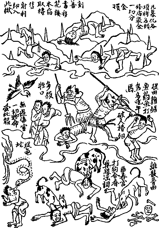 Едва были произнесены первые слова заклинания, как губы и язык одновременно задвигались. Они хотя и не издали ни звука, но как будто читали сутру. У всех, кто это видел, волосы встали дыбом. Чжэнь обо всем происшедшем известил правителя. Был издан указ захоронить останки в каменной гробнице и перенести в горную хижину.