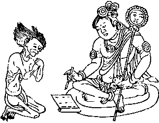 Гунаварман скончался в восемнадцатый день девятого месяца восьмого года под девизом правления Вечная радость (426). Он совсем не болел. Сидел он, как обычно, поджав скрещенные ноги ступнями вверх, запахнув полы халата и сплетя пальцы рук. Так прошла ночь, а он оставался недвижен. Думали, что он погрузился в самосозерцание. Но когда с циновки Гунавармана подняли завещание, в котором говорилось, что он достиг второго плода святости[127], все поняли, что учитель мертв. Ученики стали у праха учителя, всех известили о его кончине, воскурили фимиам. В столицу приехали более двухсот человек. Они ночь напролет твердили сутры, толпой стояли за дверьми кельи и по всей лестнице. Перед сожжением останков в юго-западной стороне неба поднялась облачная дымка, и вдруг появилось некое существо длиною этак с пи (рулон ткани). По сожжении останков всем собравшимся рассказали, что при жизни Гунаварман написал послание в тридцать гатх и вручил ученикам с наставлением: «Отправьте это монахам Индии».