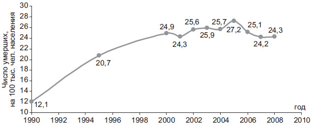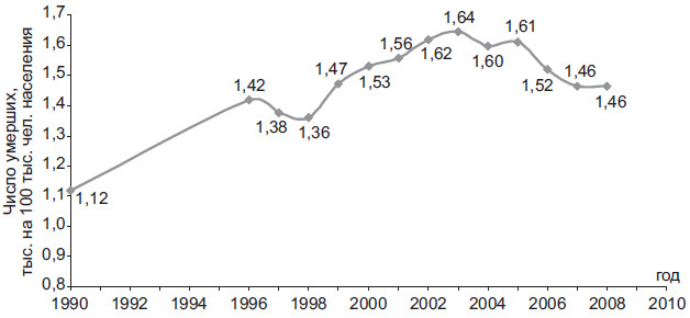 Рис. 1.7. Смертность в России по классу инфекционных и паразитарных болезней