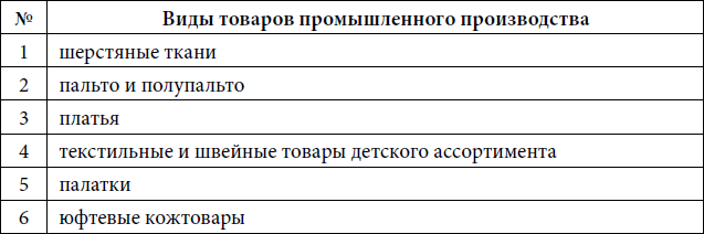 Таблица 1.1 Виды товаров промышленности, отечественное производство которых может, при сохранении тенденции, прекратиться к 2018 г.