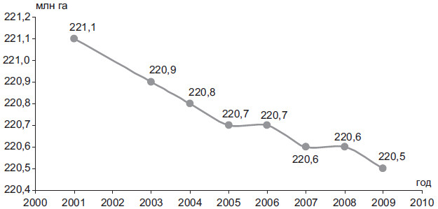 Рис. 1.15. Площадь сельскохозяйственных угодий России