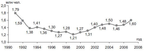 Рис. 1.23. Среднегодовая численность занятости на предприятиях государственной и муниципальной собственности