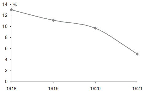 Рис. 2.7. Представительство латышей в составе ЦК в первые послереволюционные годы
