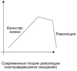 Французская революция, указывал А. де Токвиль, разразилась тогда, когда объективно социально-экономическое положение населения было значительно лучше, чем в предшествующие десятилетия. Однако любой, пусть незначительный, сбой в динамике улучшений становится революционным катализатором [64] .