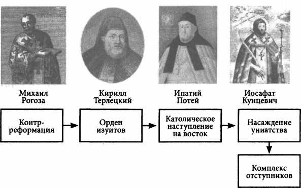 Такое предательство, а соответственно и такой комплекс, существует и в истории украинского национализма. Речь идет о принятии в 1596 году Киевской митрополией, находившейся в подчинении у Константинопольскому патриарха, Брестской унии с переходом в подчинение римскому папе. Униатский проект был сопряжен с процессом Контрреформации, попыткой папства взять реванш за отступление времен Реформации. Идеологом объединения католиков и православных под властью римского папы выступал иезуит, первый ректор Виленского университета Петр Скарга[38]38