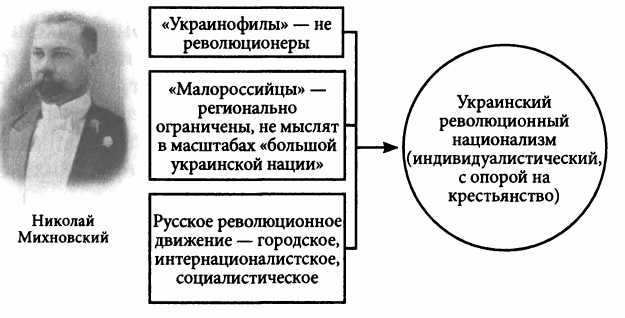 Тарасовцы отделяли себя от прежних течений – укра-инофилов и малороссийцев. Украинофилов они считали недостаточно политически решительными. Позиции малороссийцев, выступавших за малоросскую идентичность, тарасовцы противопоставляли идею большой украинской нации, включавшей и заграничный, западноукраинский, компонент. И их поддерживали из-за рубежа. Материалы братства публиковались в Австро-Венгрии, где, в частности, в Львовской газете в 1893 году увидела свет их Декларация. В Декларации заявлялось о создании в результате деятельности тарасовского движения «общеукраинской национальной семьи». Центр братства через два года после его учреждения был перенесен из недостаточно украинского Харькова в Киев, открыты филиалы в Лубнах, Полтаве, Одессе. Для пропаганды украинской темы широко использовались возможности художественной литературы, на ниве которой активно работал, в частности, писатель Михаил Коцюбинский[126]126