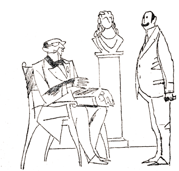 вниз, как бы говоря: «Будьте серьёзны, сударь».
