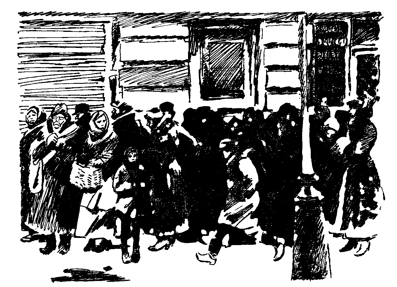 Когда возвращался обратно (а шел он с Петькой Цветком и еще с двумя скобарями), длинная очередь по-прежнему топталась на месте. Хлеб в лавку еще не привозили.