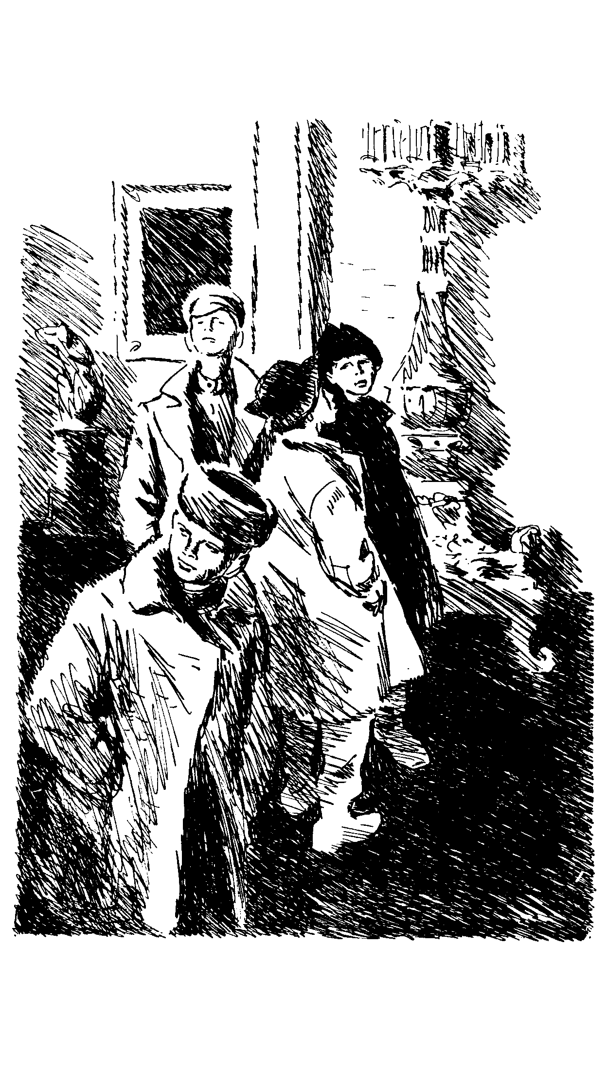 Было далеко за полночь, когда ребята, изрядно утомившись, медленно плелись к себе на Васильевский остров. Моросил мелкий осенний дождь. С Финского залива дул сердитый октябрьский ветер. Темнели дома на слабо освещенных улицах. Город спал, или, быть может, только казалось, что спал. Во многих окнах на Большом, хотя и тускло, светились огоньки. Очевидно, там чего-то ждали или к чему-то готовились.