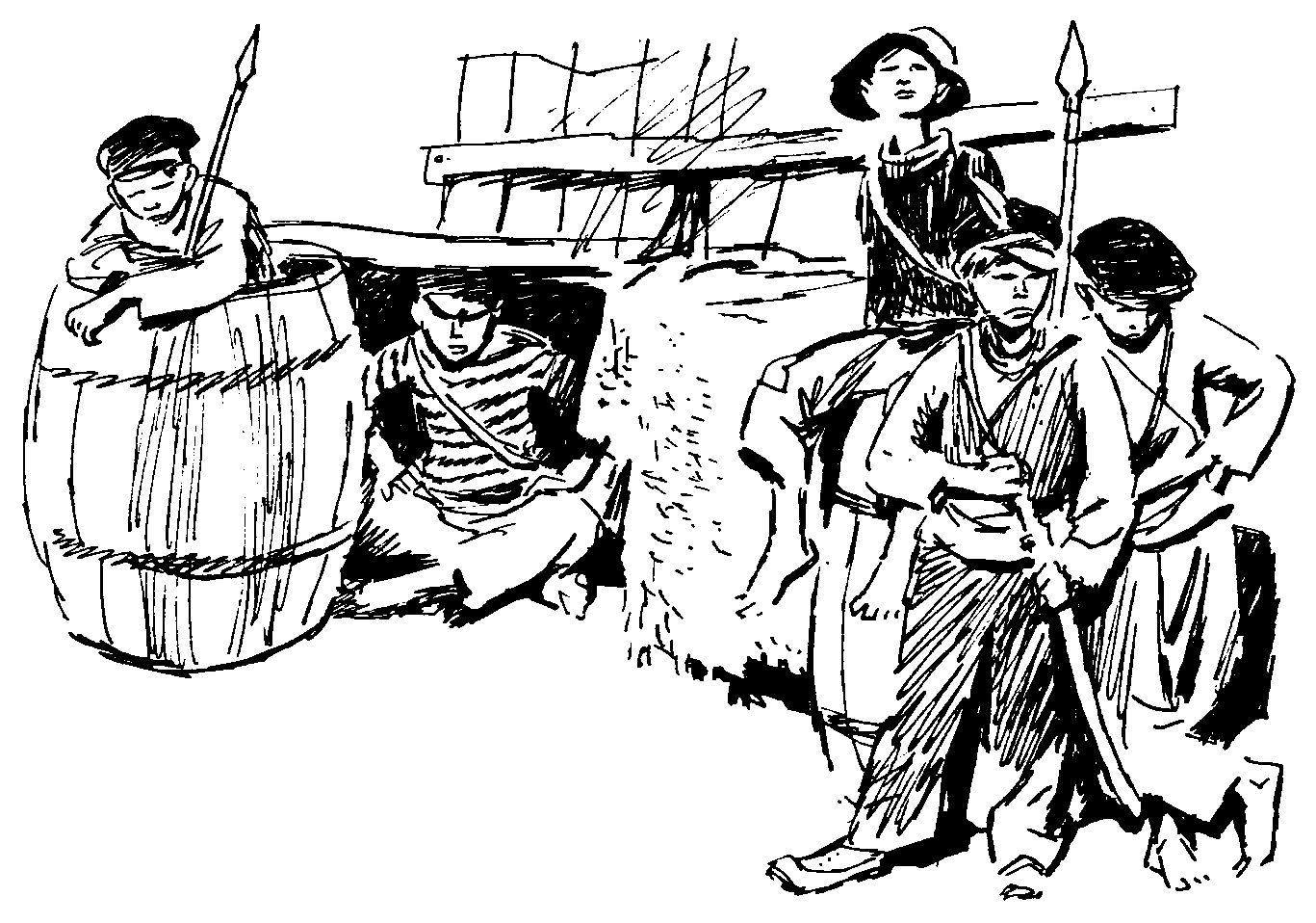 Скобари действовали решительно и быстро. Одни уже малевали себе углем усы. Другие с грохотом катили от мелочной лавки порожние бочки, волокли доски, складывали в ряд булыжники. В каких-нибудь пять минут у забора, рядом с дровяным складом возникло необычное по своей живописности разбойничье логово. Между двух бочек повисла рваная рогожа. Над ней трепыхала на ветру длинная черная тряпка с намалеванным на ней черепом. У многих черноусых и чернобровых молодцов воинственно блестели кривые разбойничьи сабли и торчали за поясом деревянные кинжалы. За рогожей под зловещим бандитским знаменем, поджав по-турецки ноги, сидел в полосатой тельняшке гроза всех купцов и помещиков знаменитый атаман Васька Чуркин – так именовал себя теперь Типка Царь. Вид у него был устрашающий. По-пиратски выглядела обвязанная мешковиной черноусая голова. Натертые кирпичом щеки краснели. Он не только грабил богатеев и убивал на каждом шагу стражников, городовых, но и освобождал из неволи обездоленных людей. Как хвалился Чуркин, десять сыщиков во главе со знаменитым Шерлоком Холмсом, Ником Картером и Натом Пинкертоном его ловили и не могли поймать.