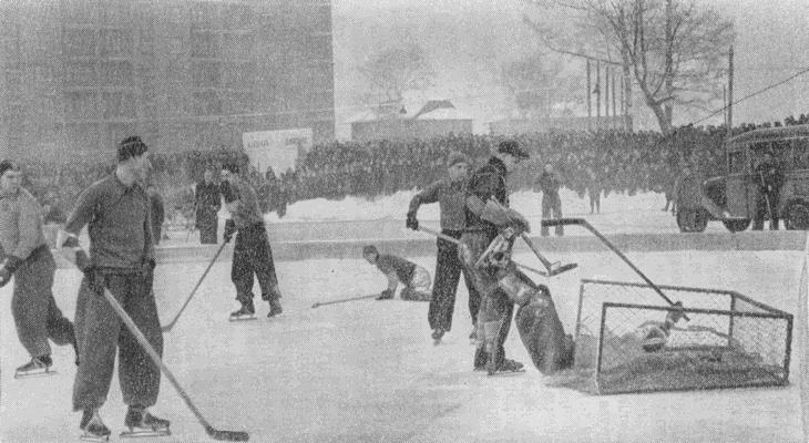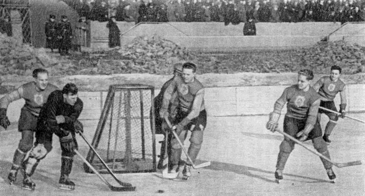 Финальная игра первого чемпионата по хоккею с шайбой между командой ЦДКА и столичной командой «Динамо» (фото А. Волкова)