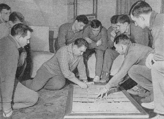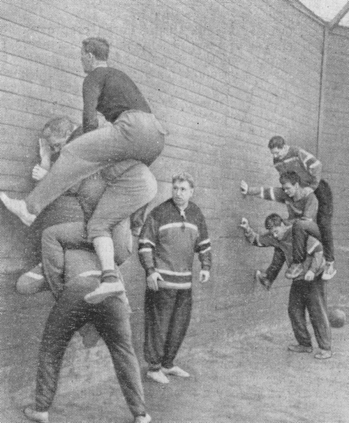 Исключительно большое событие в жизни команды произошло в последние два года. За это время все члены команды стали коммунистами или комсомольцами. Это, безусловно, не замедлило положительно сказаться на всей работе и жизни коллектива. Партийно-комсомольская группа активно помогает начальнику и старшему тренеру команды подполковнику Тарасову в организации и проведении тренировок, в укреплении дисциплины и дружбы в коллективе, в повышении сознательности спортсменов.