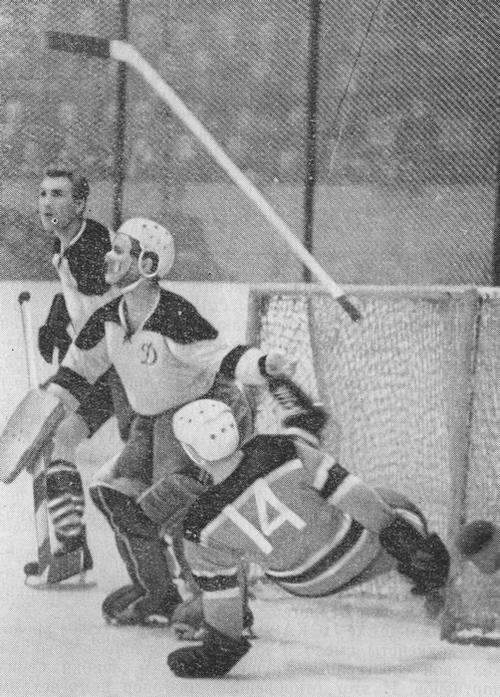 Вратарь Н. Пучков защищает ворота сборной СССР (фото В. Вдовенко)