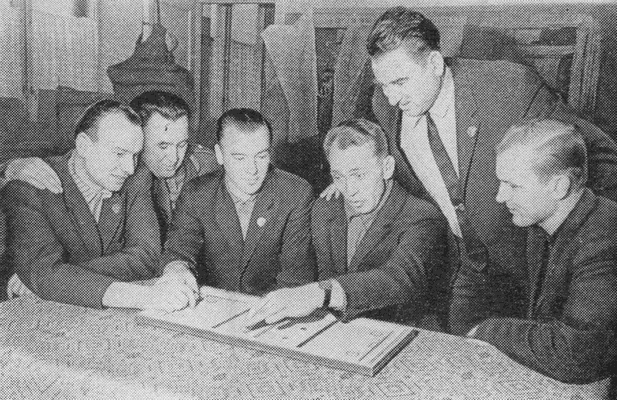 Особенно большую помощь старшему тренеру в сколачивании коллектива, в повышении уровня спортивного мастерства и боевитости команды оказывают лично парторг Б. Кулагин и комсорг В. Александров. Вместе с капитаном команды Н. Сологубовым они составляют то ядро коллектива, которое задает тон всей жизни и работе замечательной дружной и работоспособной команды.