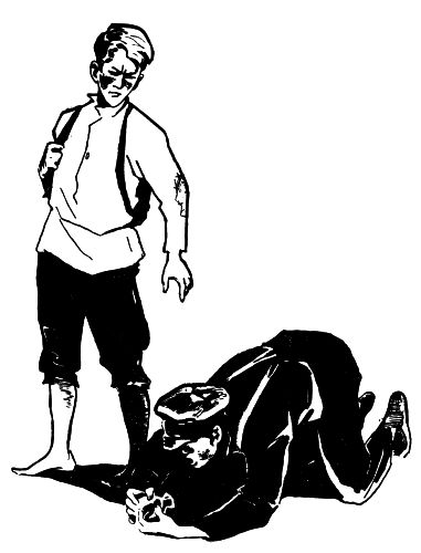– Ну, держись, Губан! – Тимка дает подножку, бьет Кирьку вдогон по шее. Тот падает.