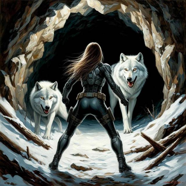 Зверь с белой под стать сезону шкурой, высотой ей по грудь в холке, медленно приближался, стряхивая с себя снежную крошку. Наморщив нос, он во всю длину обнажил клыки-кинжалы. Снова раздался леденящий внутренности рык. Руки на древке девушки дрогнули. Без костюма, без способностей… Как с этим чудовищем сражаться? Почему он медлит? Ответом на этот вопрос стало движение за его спиной – в пещеру поочерёдно протиснулась пара его сородичей.