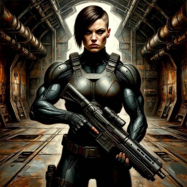 Элис обернулась, чтобы увидеть «валькирию». Мощную штрафницу не заметить было сложно, она возвышалась практически над всеми. Тяжёлая броня обеспечивала ей неплохую защиту. Силовой не являлась, но сидела на ней так, будто она в ней родилась. Из оружия – плазменный нож и «Плевок» – винтовка, стреляющая сгустками плазмы. Оружие мощное, но с долгой перезарядкой – эффективное только на ближней дистанции.