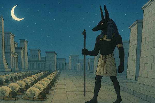 Люди, увидевшие жуткую фигуру, озаряемую светом луны, порой лишались сознания от ужаса. Да и немудрено. Тело Сета было покрыто медной чешуей, а его вытянутая морда с ослиными ушами надменно взирала на людишек, падающих в пыль перед торжественно шествующим божеством. Крест анх в одной руке и посох уас в другой. Ни у кого не осталось ни малейших сомнений. Сам Повелитель песчаных бурь посетил несчастный Уасет в великий праздник.