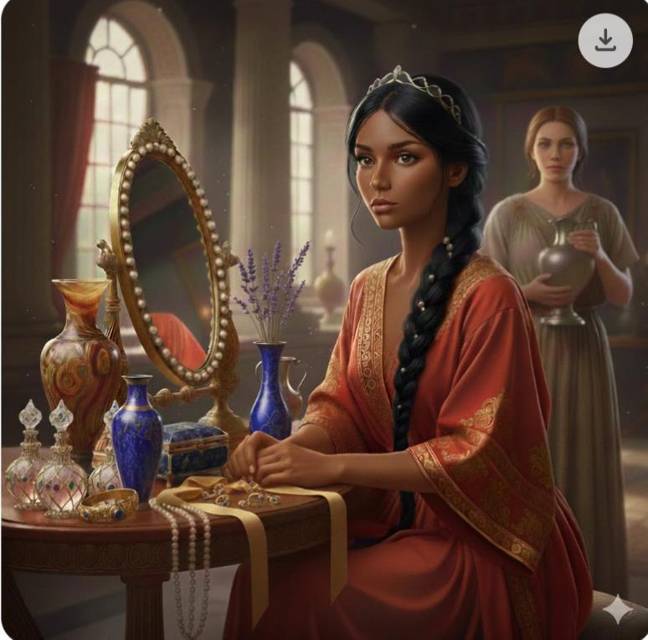 Утренний туалет для царевны – дело небыстрое и хлопотное. Умыться, волосы расчесать, платье и украшения к завтраку выбрать нужно. А это сложно. Отец дарит много, муж тоже не скупится, а на свадьбу и вовсе принесли столько камней и золота, что царевна до сих не разобрала всего, заперев драгоценности под замок. Только из Египта целый сундук прислали. И тетка Лаодика, и все три царицы, да и сам Господин Неба расщедрился. Не каждое царство такую казну имеет, сколько у нее лежит золота в виде разных перстней, серег и ожерелий.