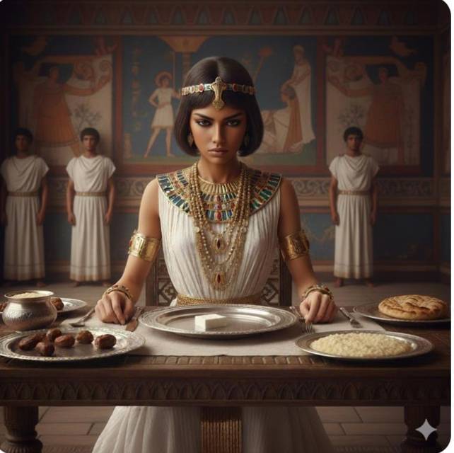Серебряная посуда, стоявшая на столе, была достойна царей, зато еда – лавочника из предместий. Размазанная по тарелкам каша, нарезанный тончайшими ломтиками овечий сыр, финики и немного соленой рыбы. Никто не уйдет голодным, но изысков прошлого на столе больше нет и в помине.