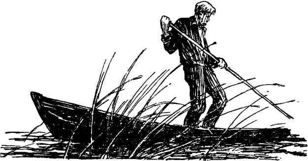 На второй день я увидел черневший на горизонте лес. Ну, вот и прекрасно! Я думал, что к вечеру доберусь до него, ан нет. Я плыл еще два дня, а лес по-прежнему оставался впереди. Речка стала труднопроходимой даже для моего ялика. Она была шириной не больше метра и делала немыслимые петли. На крутых поворотах возни не оберешься, пока протолкнешь ялик вперед. Еще пошли отмели – одна за другой. Перед каждой приходилось вылезать и тащить ялик волоком. Скоро я обнаружил, что речка вдруг резко свернула в сторону и продолжать плыть по ней означало бы удаляться от леса.