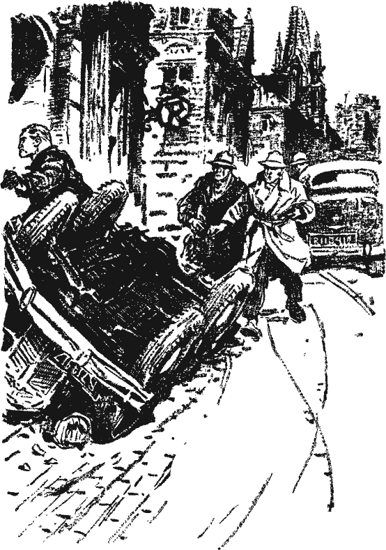 Из дверцы опрокинувшегося автомобиля, как из люка, выкарабкался высокий, плечистый мужчина в короткой черной куртке. Он встал на ноги, пошатнулся и вдруг с неожиданной проворностью прыгнул на тротуар и скрылся в воротах… Выскочившие из зеленой машины люди – их было четверо – с пистолетами в руках подбежали к лежащей на боку машине. Один из них погнался за человеком, скрывшимся в воротах…